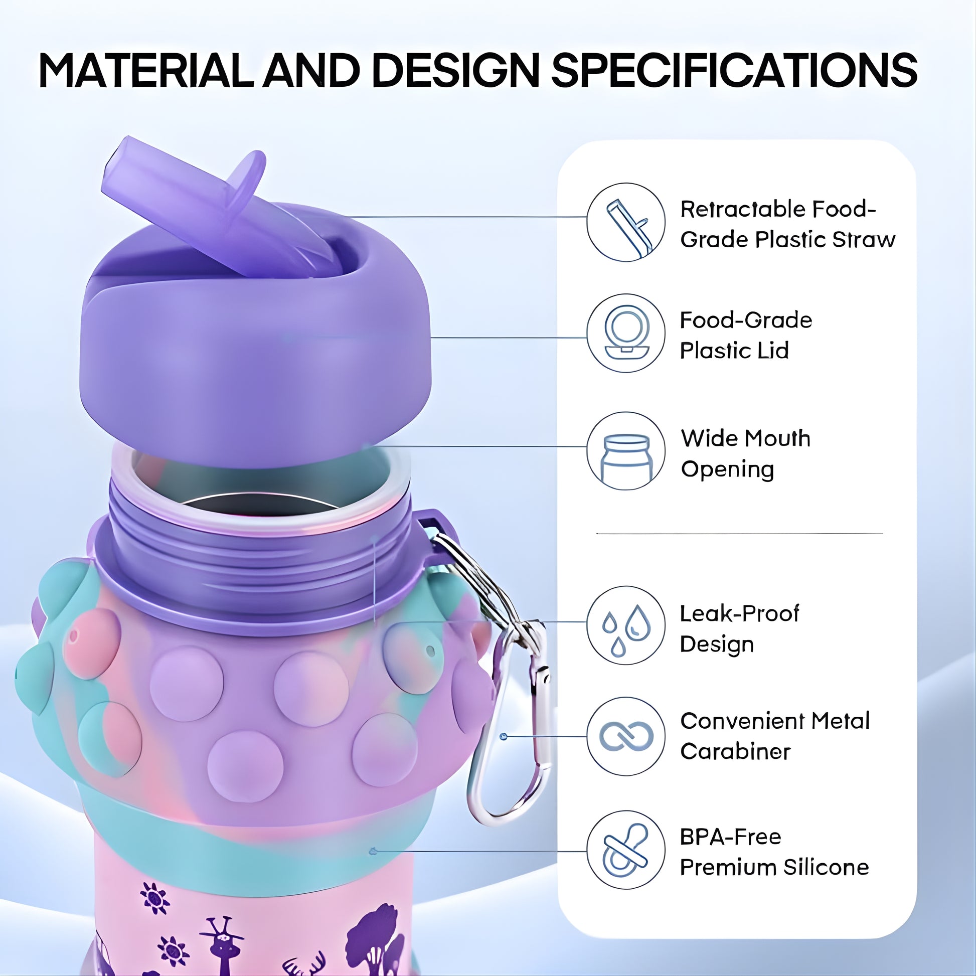 Make hydration fun, safe, and convenient with the Collapsible Silicone Water Bottle with Dotted Design (600ml). Designed especially for school kids, travelers, gym-goers, and outdoor adventurers, this bottle features a soft, dotted silicone body that’s easy to grip and visually appealing.