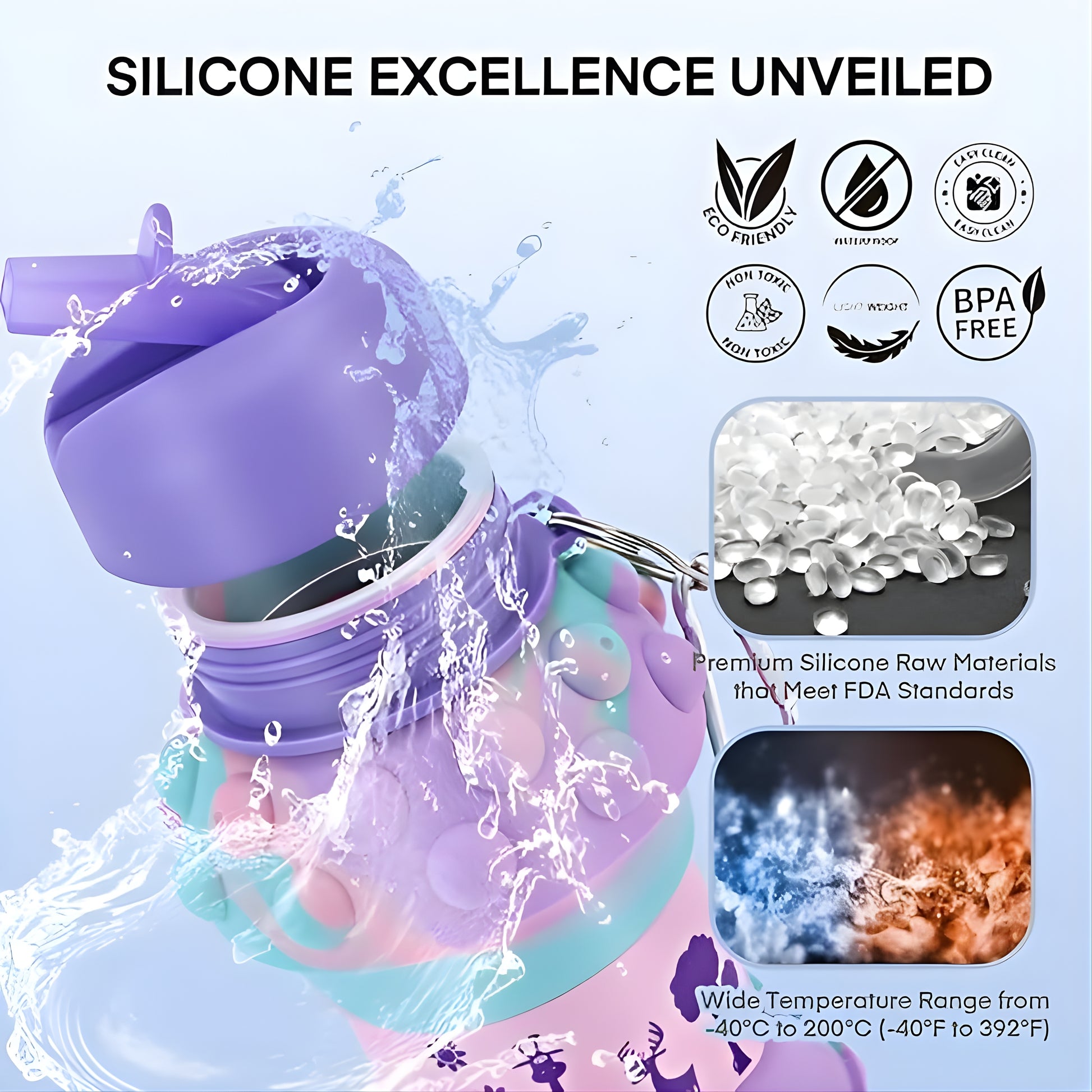 Stylish, practical, and kid-friendly, the Collapsible Silicone Water Bottle – Dotted Design (600ml) is the perfect hydration companion for every adventure.